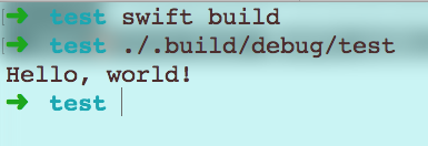 swift build编译一下,该命令会给我们生成一个可执行文件,位置在./.build/debug/test,我们执行一下看看: